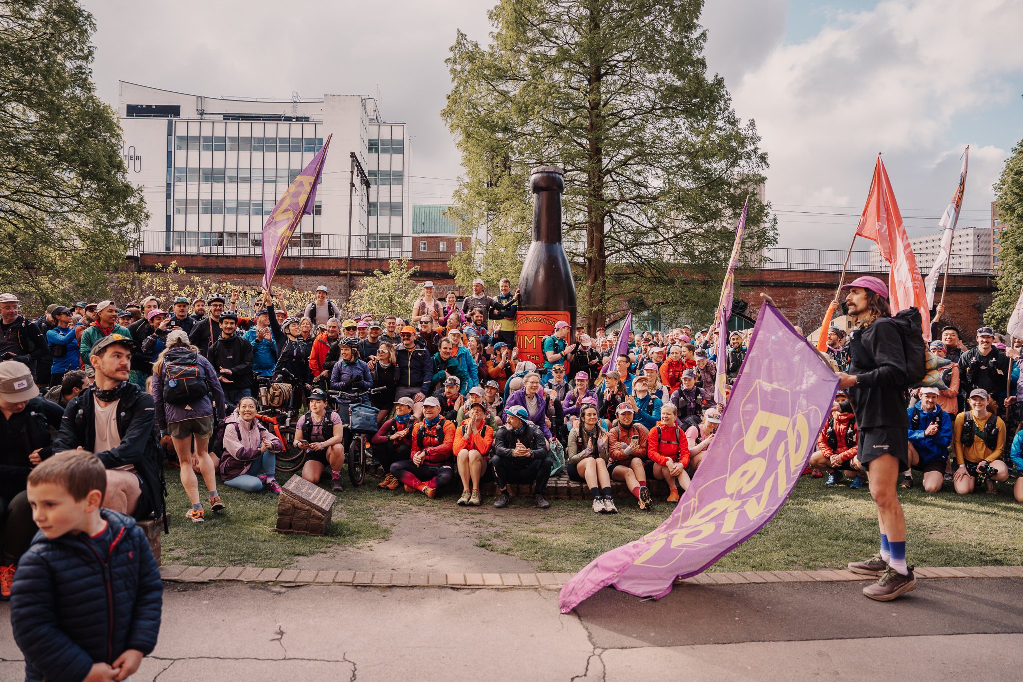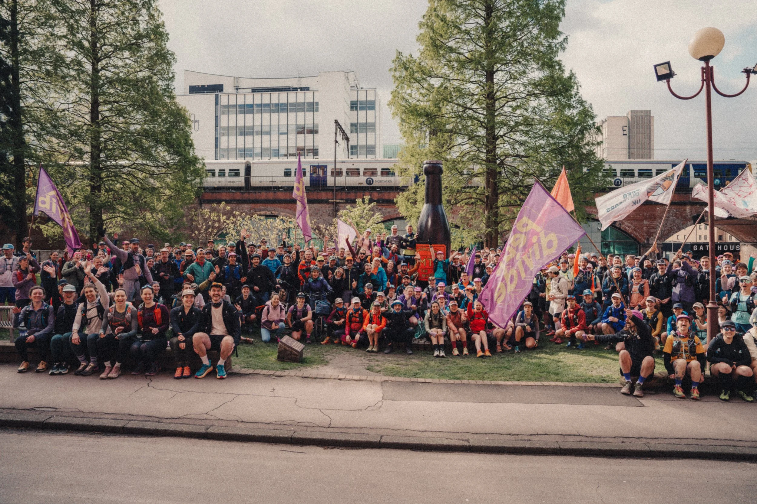 On 18th April 2026, 293+ shufflers (and 5 riders) converged at the Vimto Statue in Manchester and began a magical slow journey to the Peak and beyond. The following afternoon they would reach Sheffield, many having run further than they thought possible.
